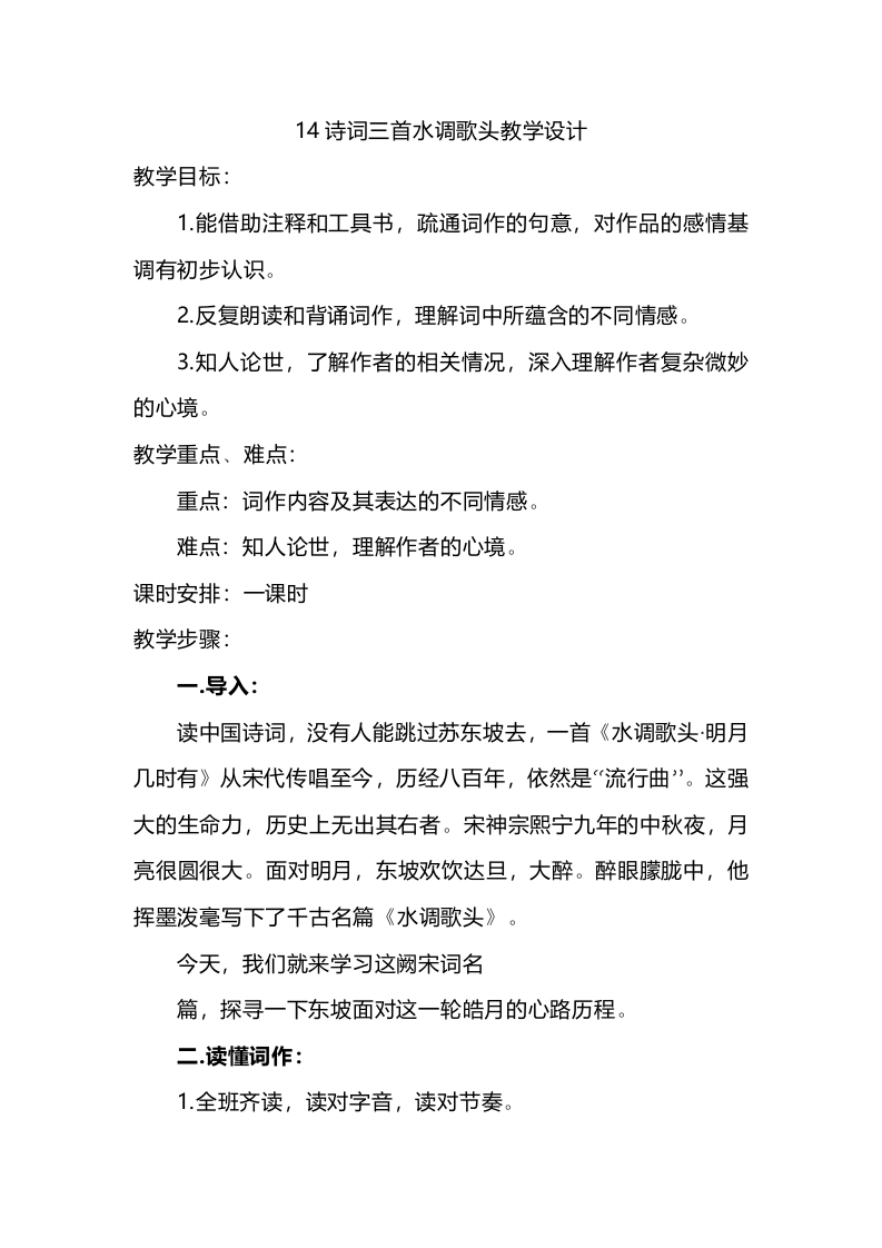 第14课《诗词三首——水调歌头》教学设计 2023—2024学年统编版语文九年级上册_42042443
