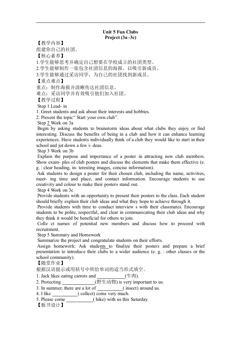 Unit 5 Fun ClubsProject (3a–3c)教学设计 2024-2025学年人教版七年级英语上册_47489745