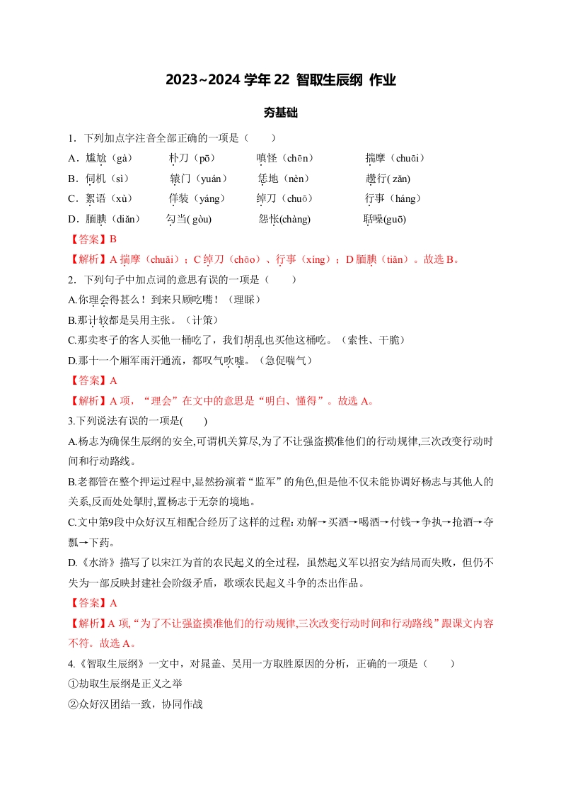 22 智取生辰纲 作业1 部编版九年级上册同步练习
